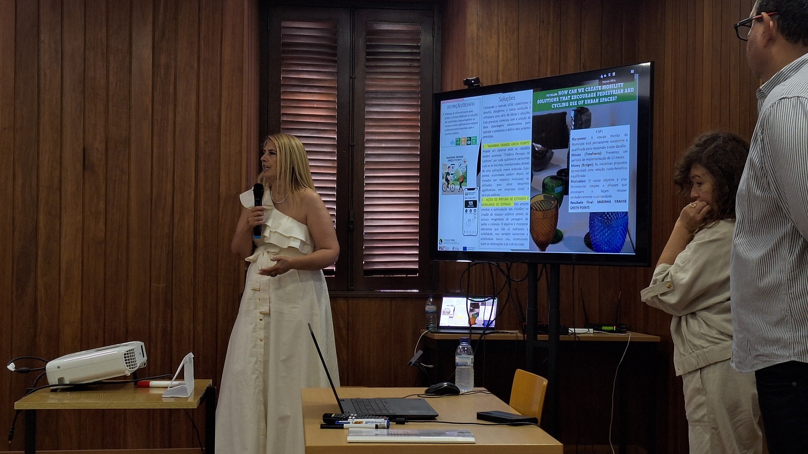 Durante a sessão, os formandos apresentaram os projetos finais desenvolvidos ao longo do curso, evidenciando a aplicação prática dos conteúdos abordados: